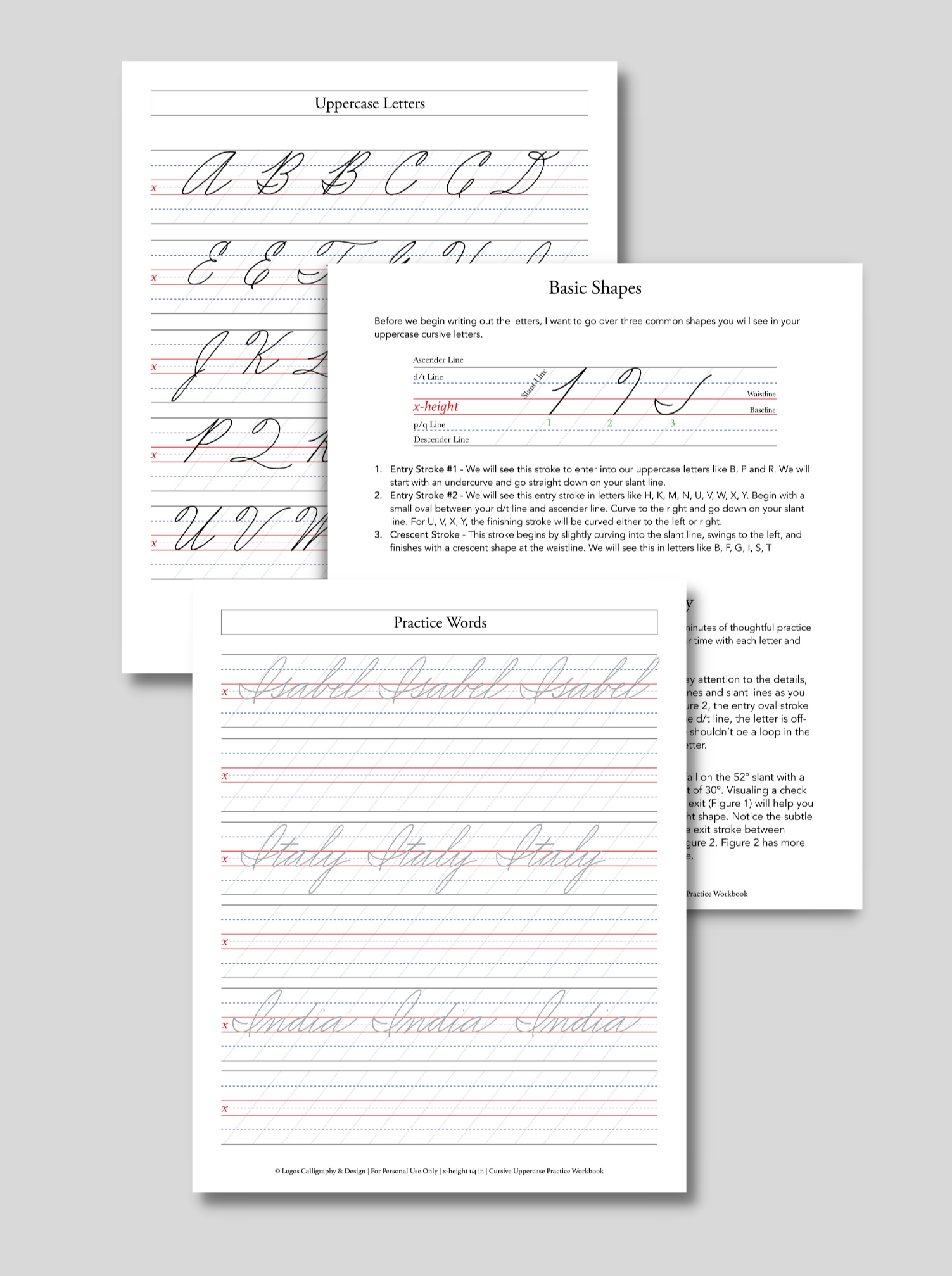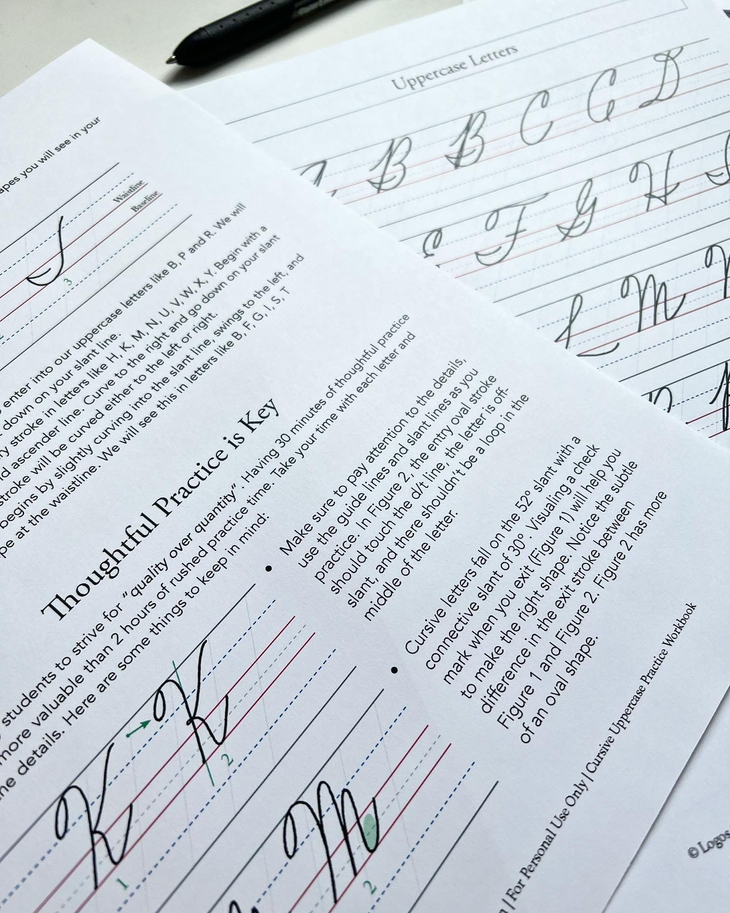 This is such a well-design workbook! I love the those word examples for each letter. My handwriting was improved literally in a few days with 15 mins practice a day. It’ s perfect way of meditation for me as well after a full day of busy work. The only little thing I personally wish is the workbook can provide more styles for certain letters, especially for letter A, Q and Z. (People who are not familiar with cursive style may feel hard to recognize those letters). Overall, I love it so much!